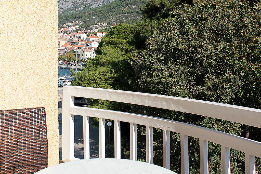 The Double rooms are 18 m² large and located on the third floor. The rooms are equipped with large windows and a beautiful view on the city and the Biokovo mountains. They got a balcony with parkview, bed-sitting room and suit for up to two persons .